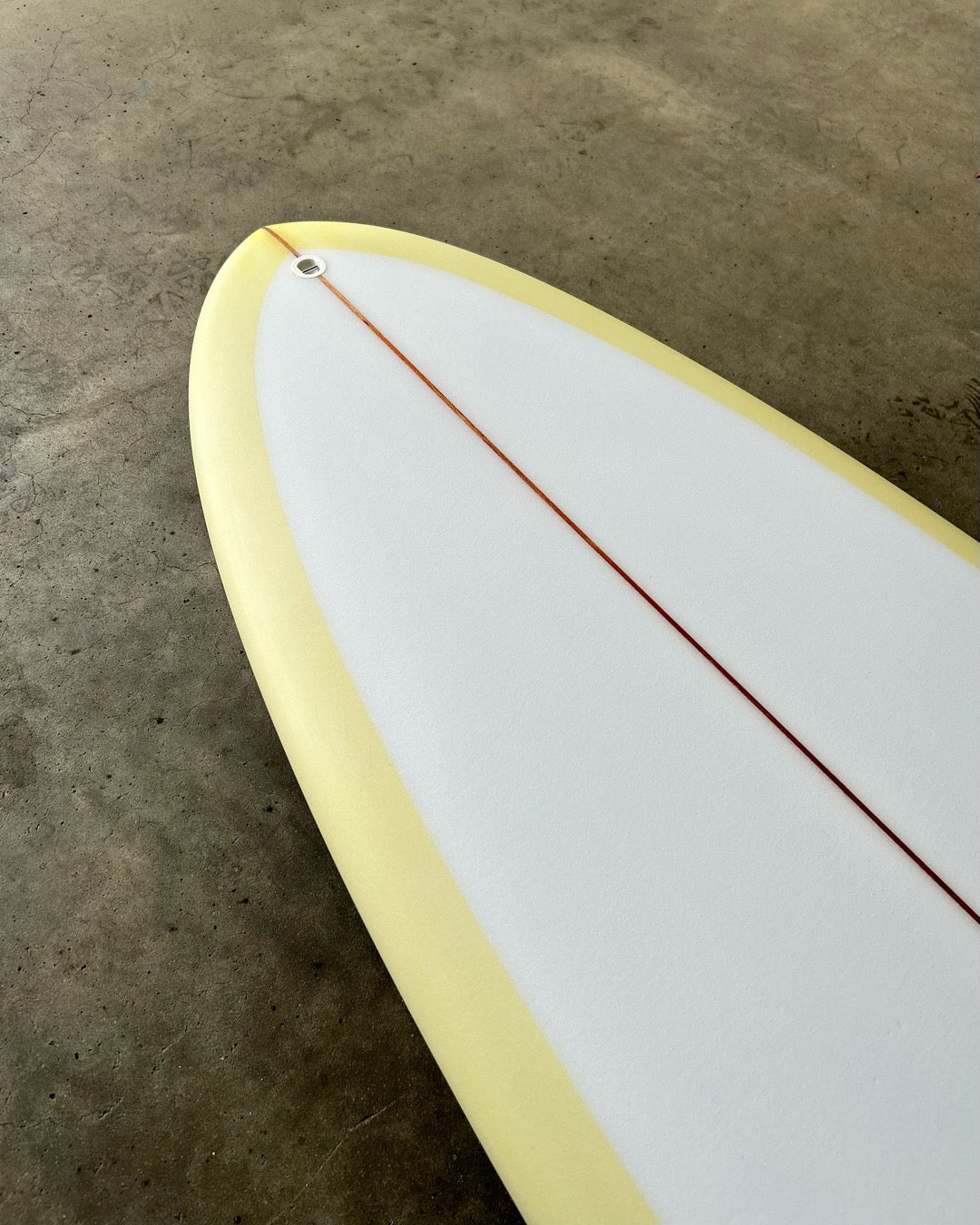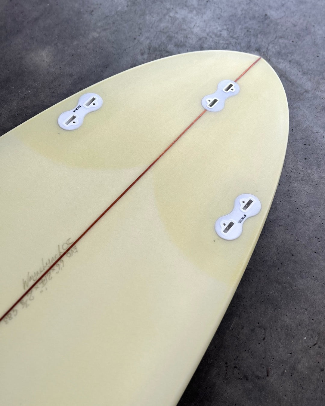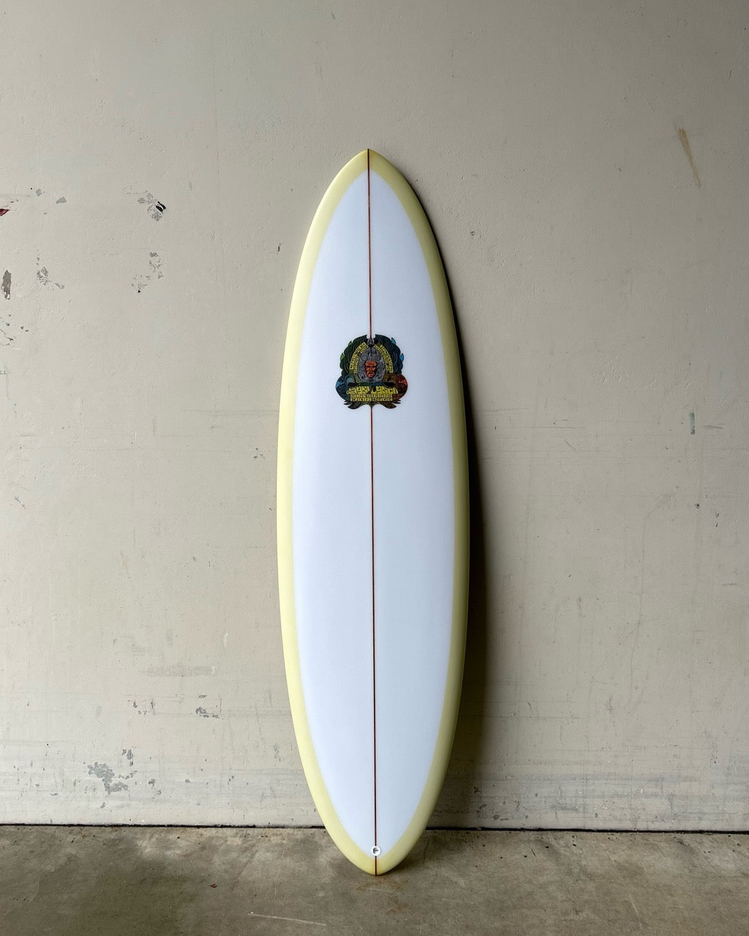 The current Evo design has a modern bottom contour of single to double concave, with fin options for a single, 2+1 or in the smaller versions, thruster setup. With flow and speed in mind for the longer and performance in the shorter, the Evo will provide a powerful rail engaging style of surfing that I’ve enjoyed and been addicted to for over 50 years.