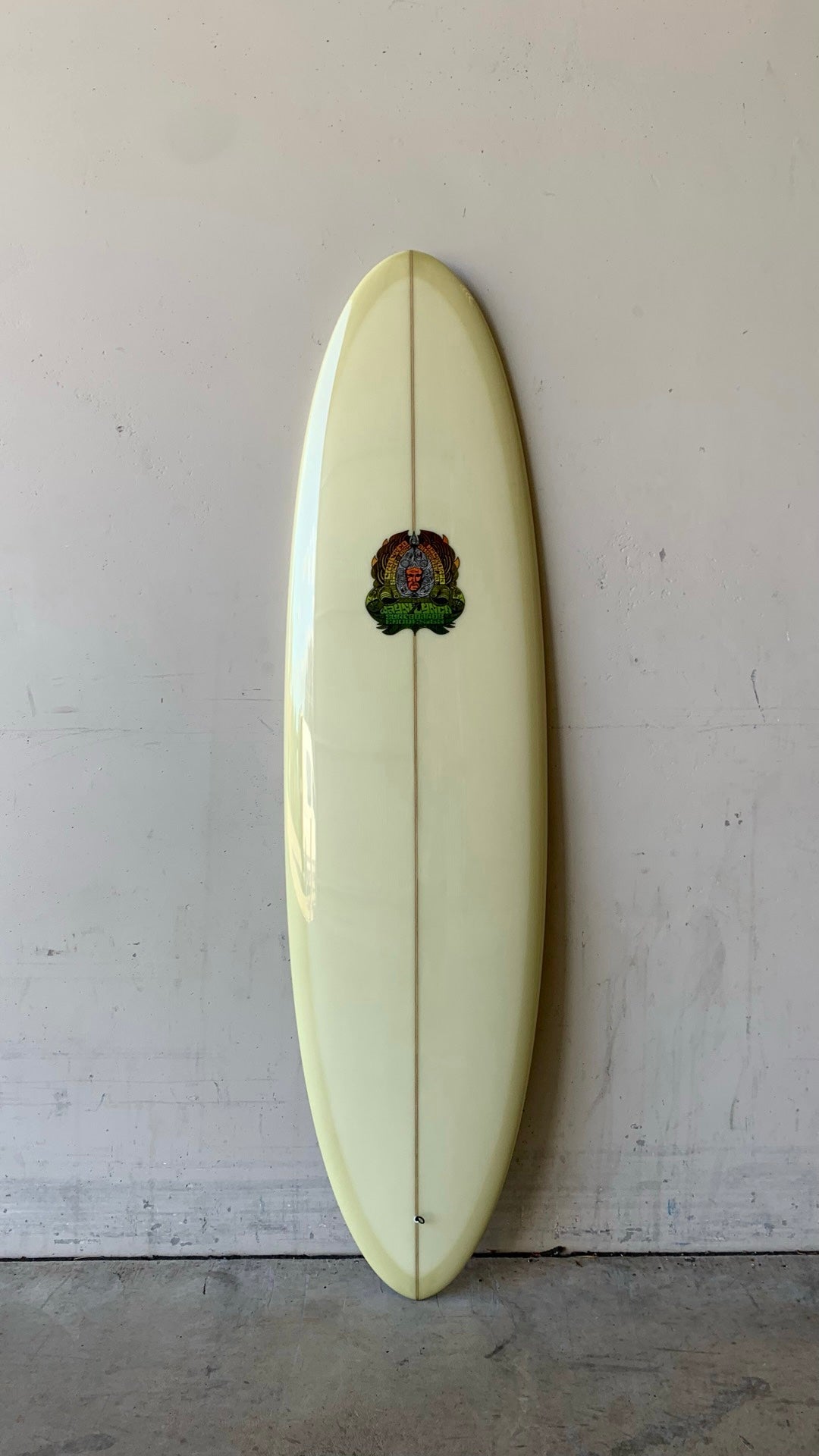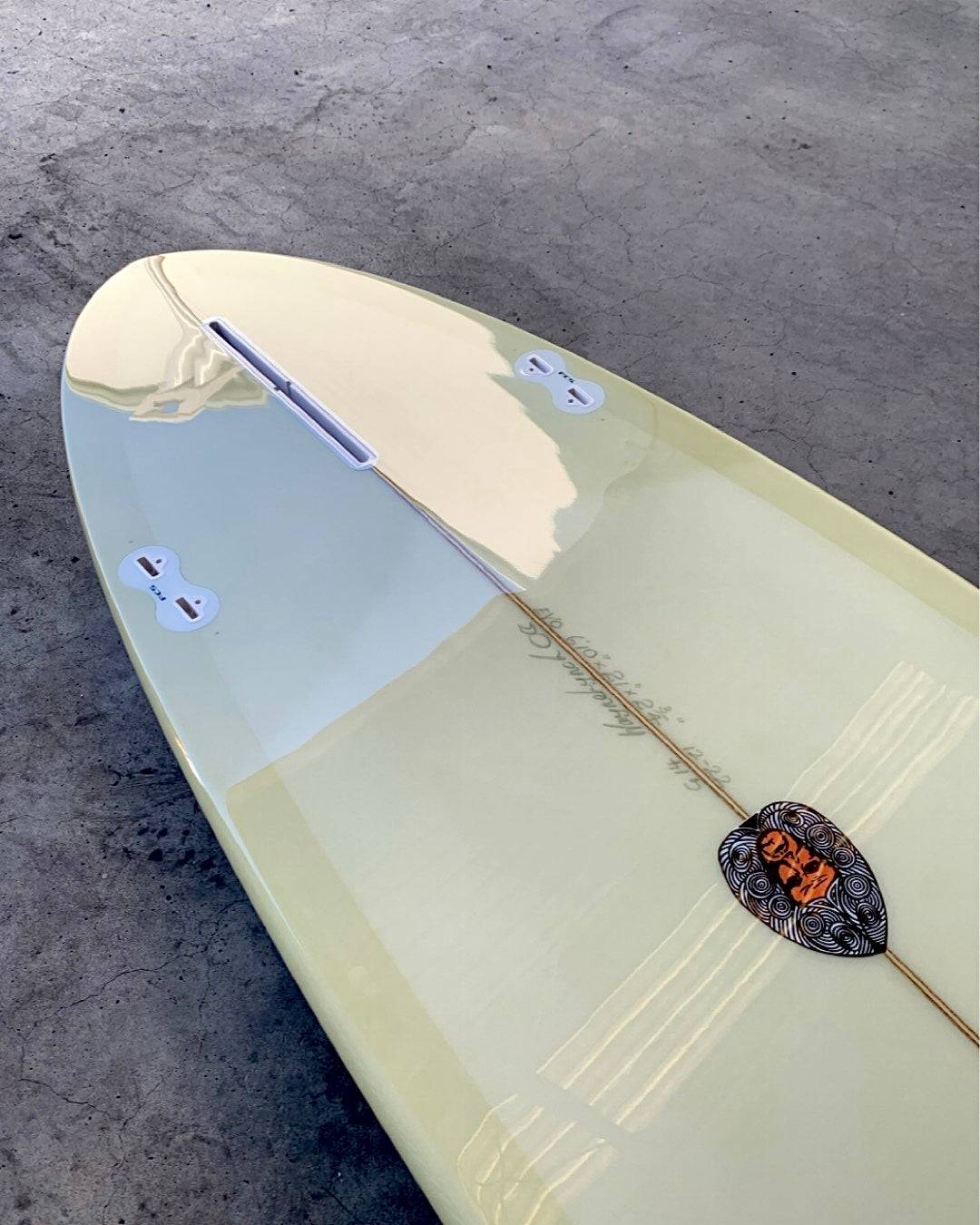 The current Evo design has a modern bottom contour of single to double concave, with fin options for a single, 2+1 or in the smaller versions, thruster setup. With flow and speed in mind for the longer and performance in the shorter, the Evo will provide a powerful rail engaging style of surfing that I’ve enjoyed and been addicted to for over 50 years.