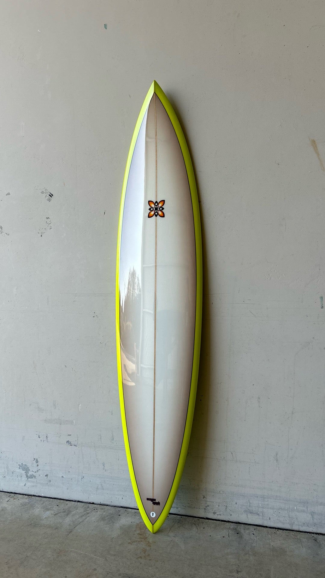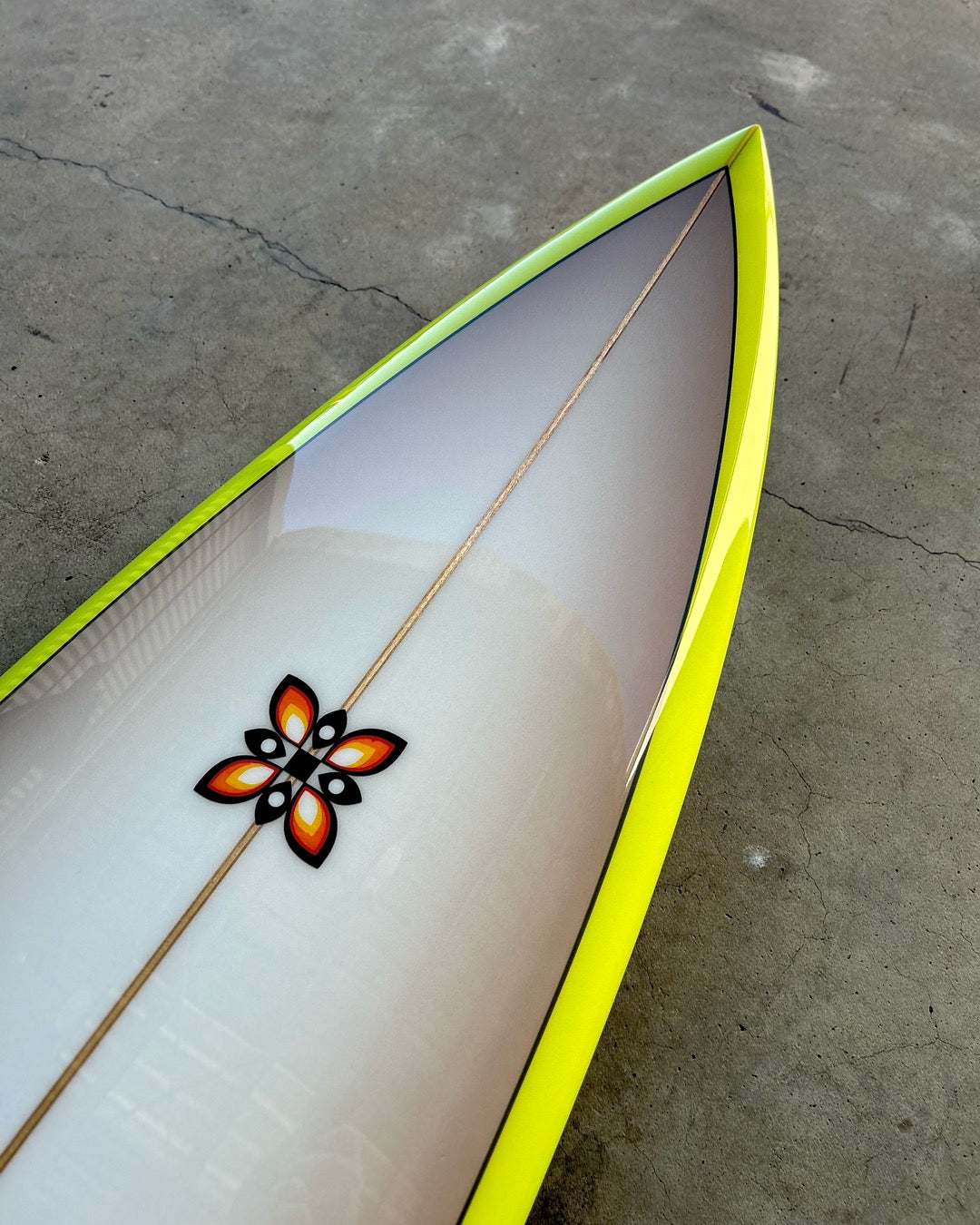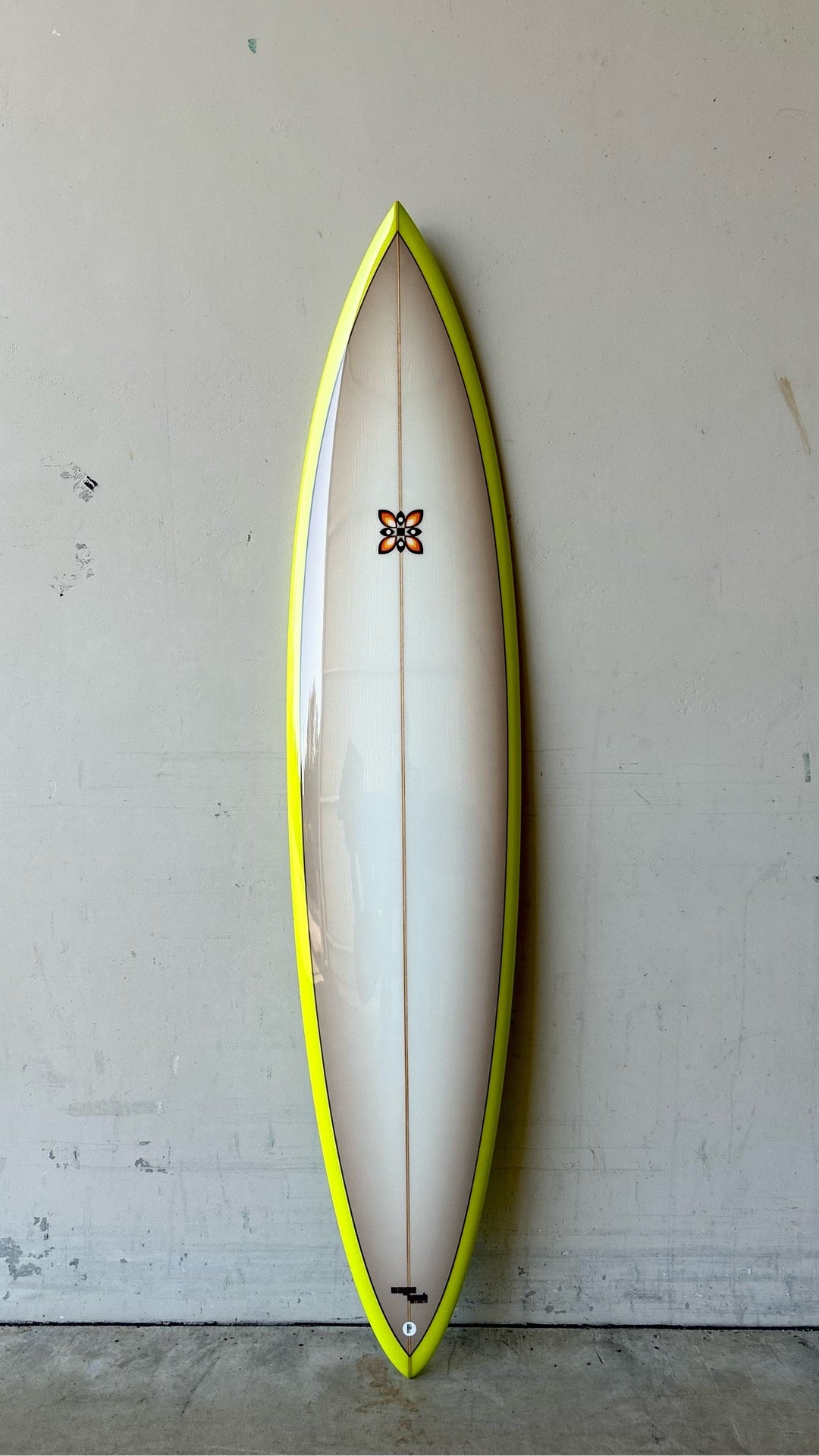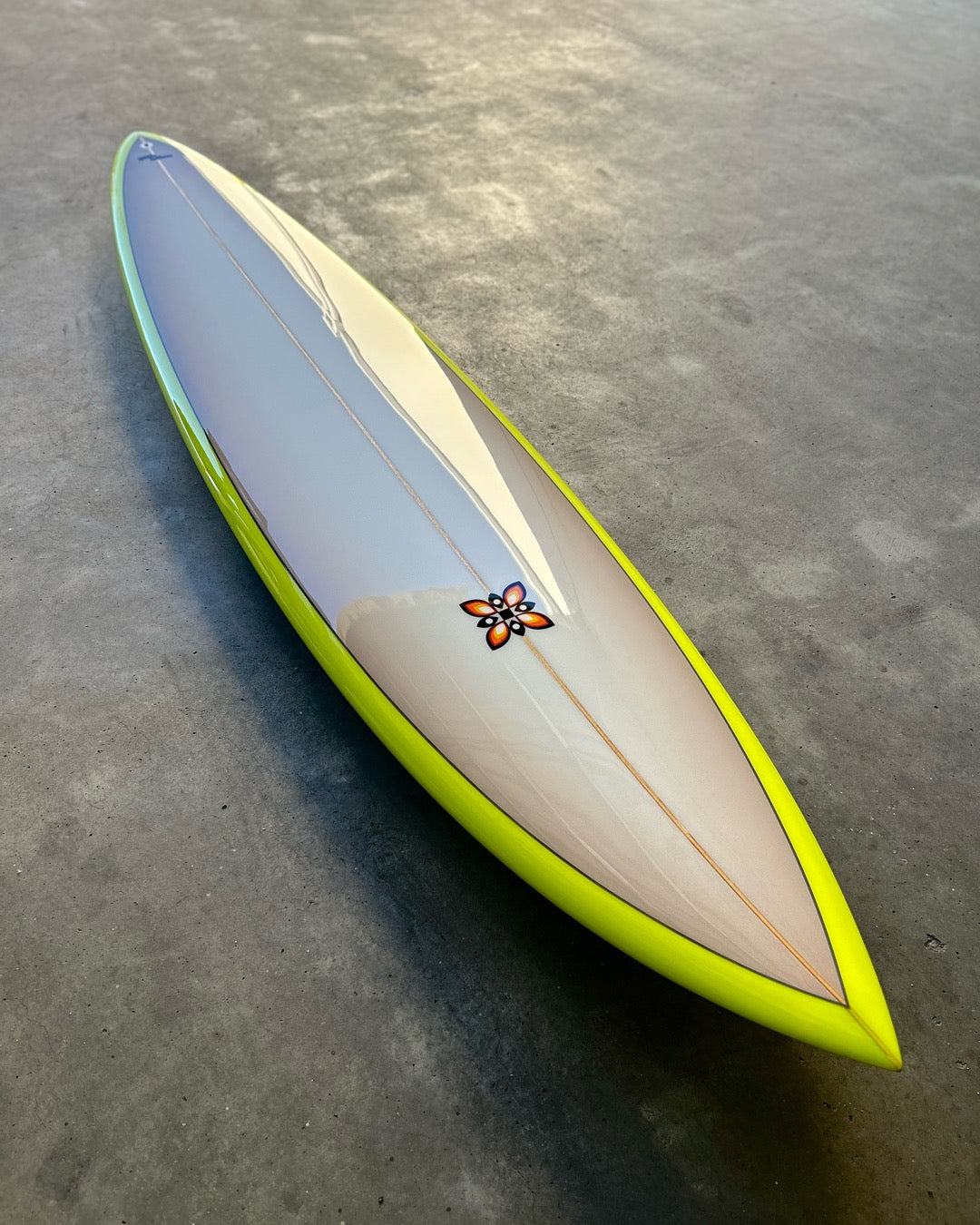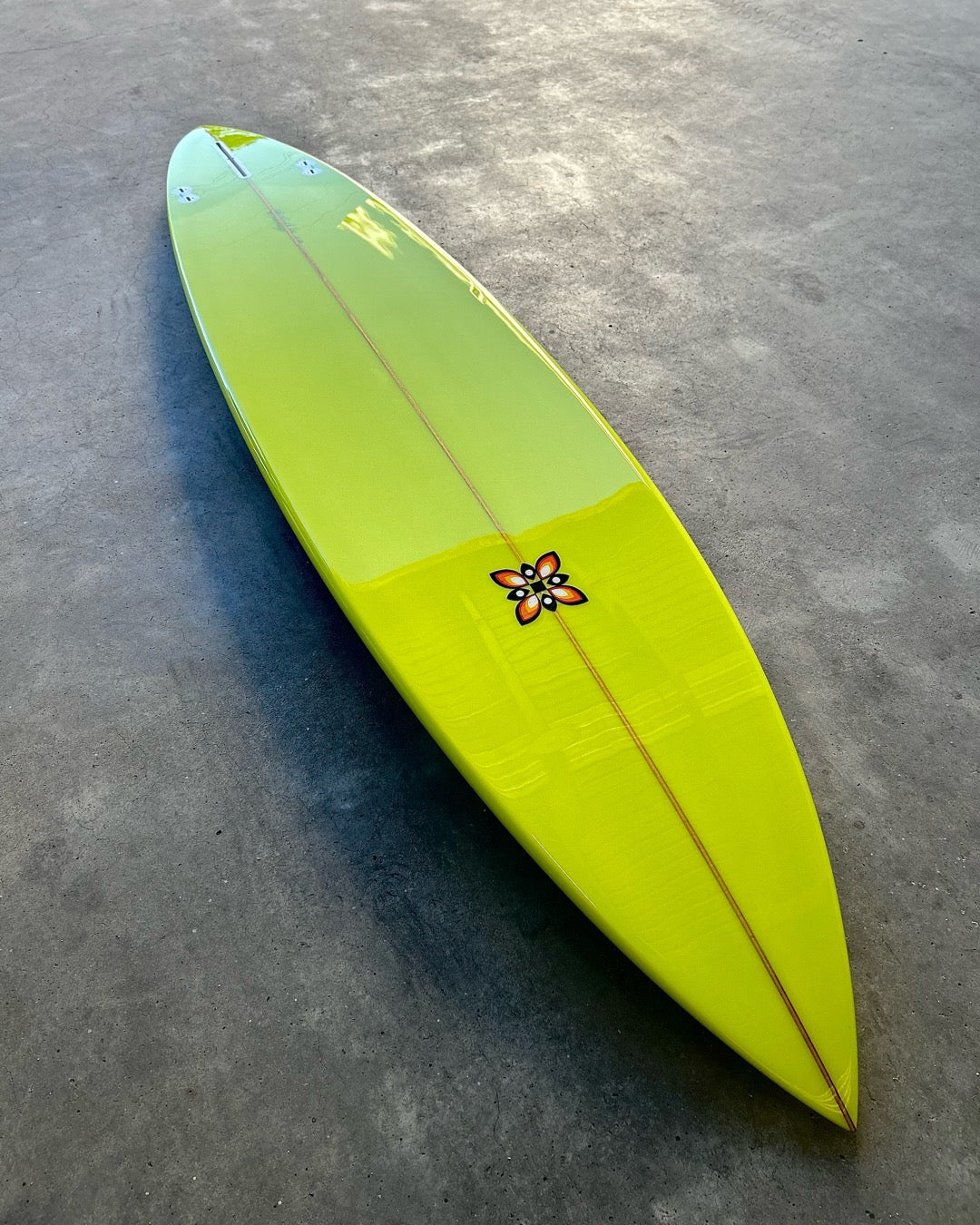The current Evo design has a modern bottom contour of single to double concave, with fin options for a single, 2+1 or in the smaller versions, thruster setup. With flow and speed in mind for the longer and performance in the shorter, the Evo will provide a powerful rail engaging style of surfing that I’ve enjoyed and been addicted to for over 50 years.