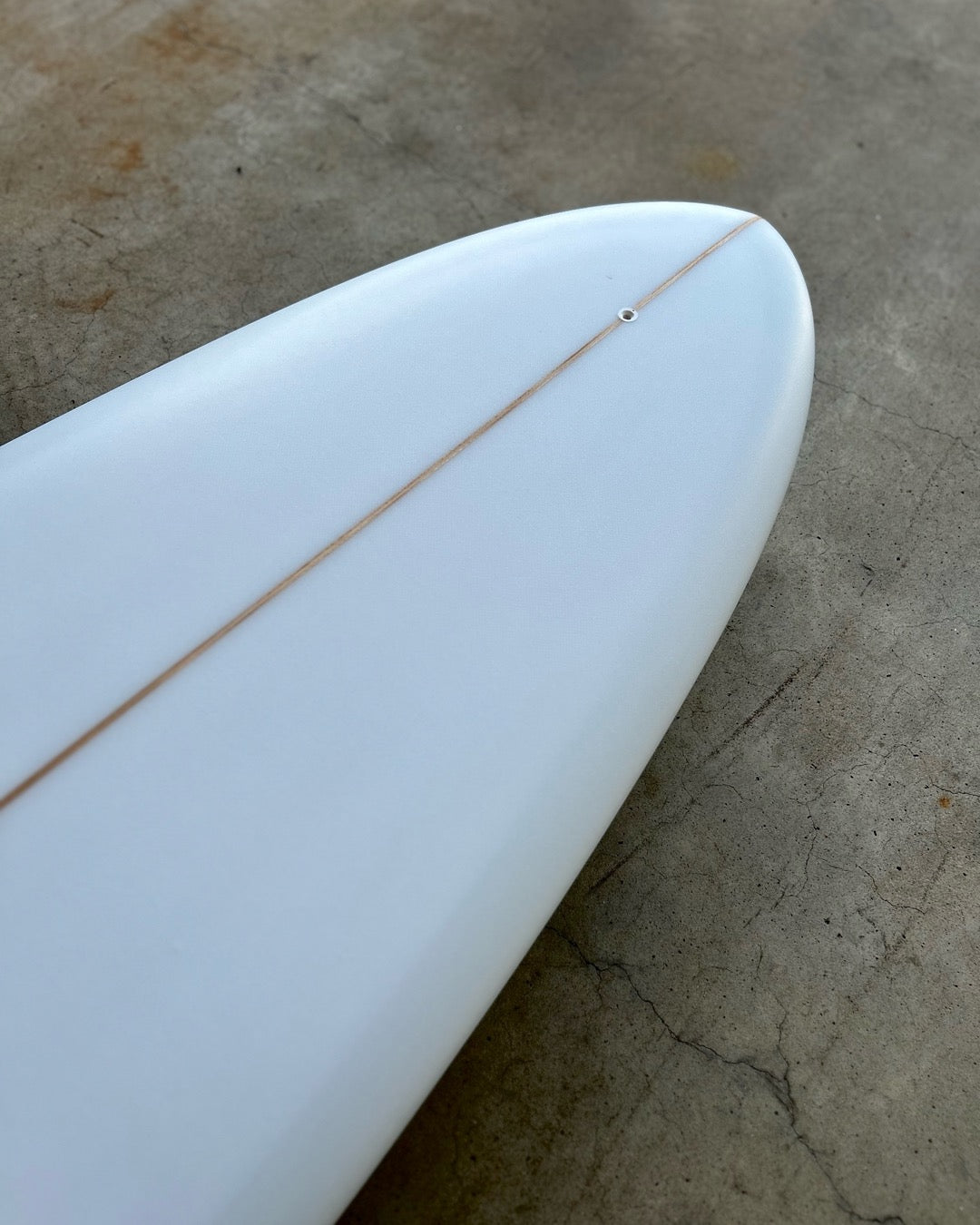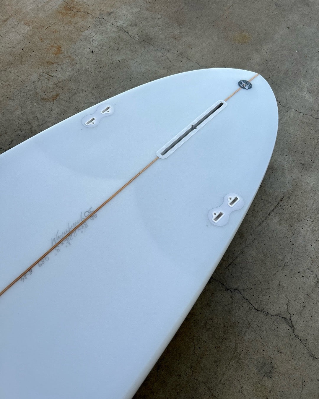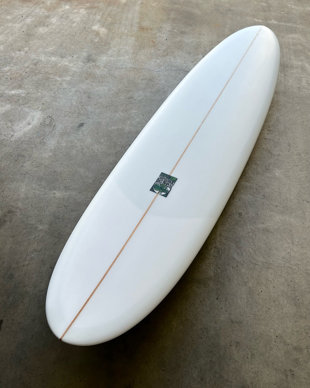 The current Evo design has a modern bottom contour of single to double concave, with fin options for a single, 2+1 or in the smaller versions, thruster setup. With flow and speed in mind for the longer and performance in the shorter, the Evo will provide a powerful rail engaging style of surfing that I’ve enjoyed and been addicted to for over 50 years.