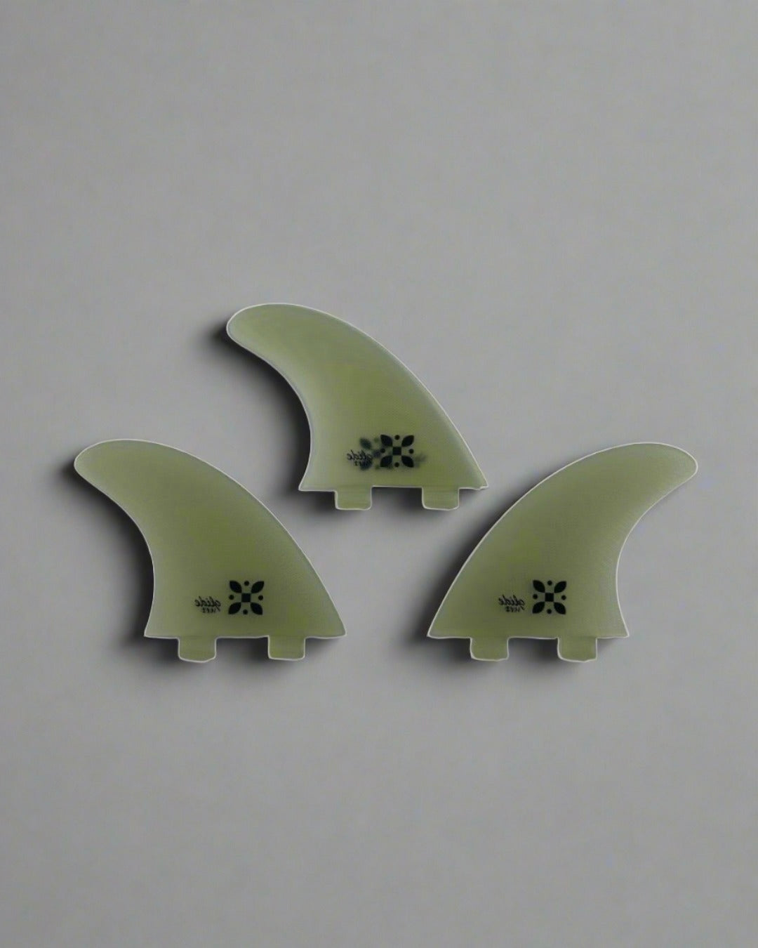 3 FIN THRUSTER SET UP-Back fin ,Base 112mm, Height 115mm. Side fins-Base 118mm, Height 117mm - back fin smaller.
