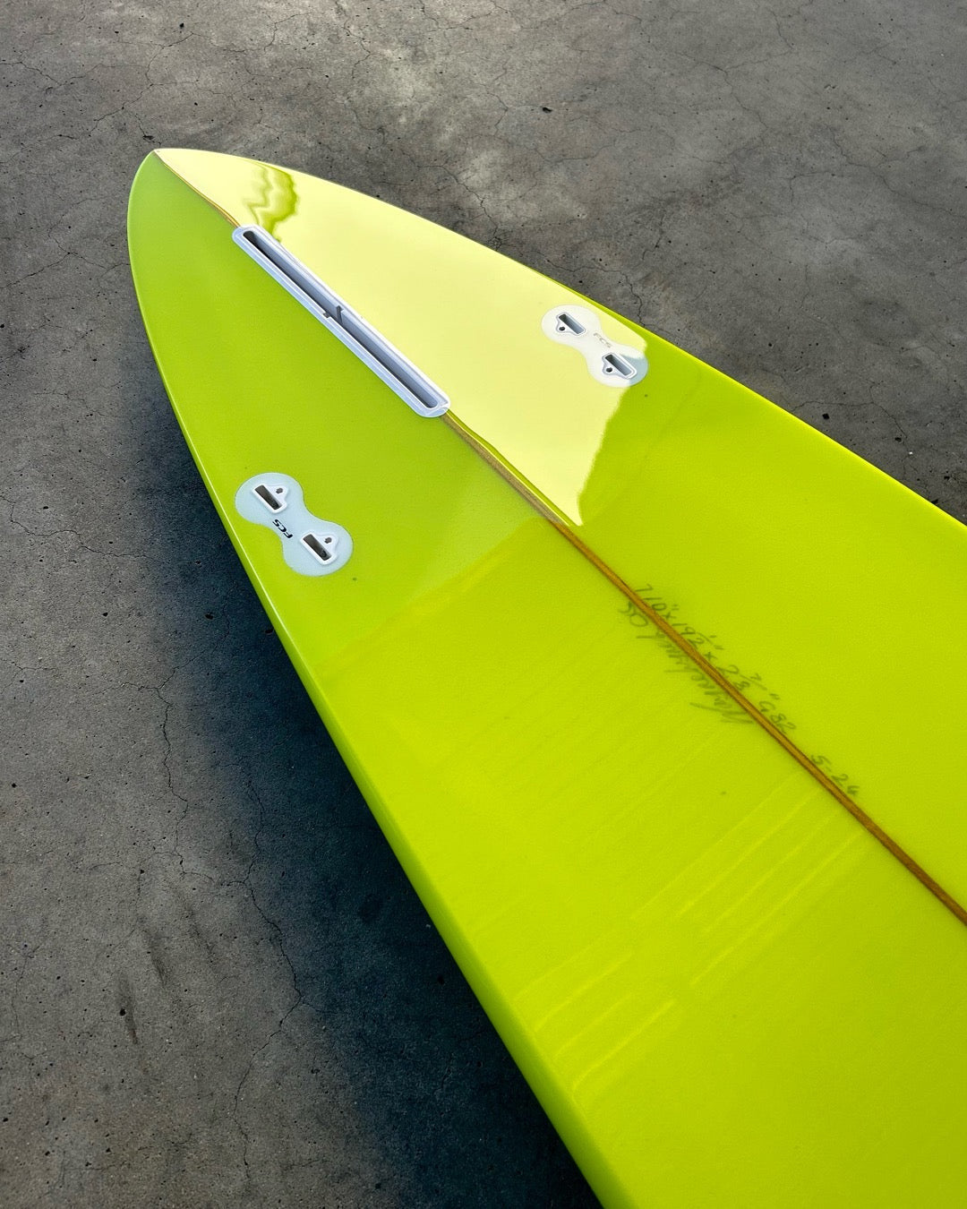 Reno Abellira had shaped a few boards for the Lorne surf shop when he was in Vic for the 1977 bells contest. I walked into the shop some time after and saw the 6’11 swallowtail sitting in the racks and immediately bought it. The Reno was one of my all time favourite boards, but had some aspects I wanted to adjust, especially the nose rocker as it was just a bit too flat. Furthering that, I’ve refined and changed that board over many years by increasing the entry rocker, adding a modern bottom and rails whilst trying to maintain the original plan shape.